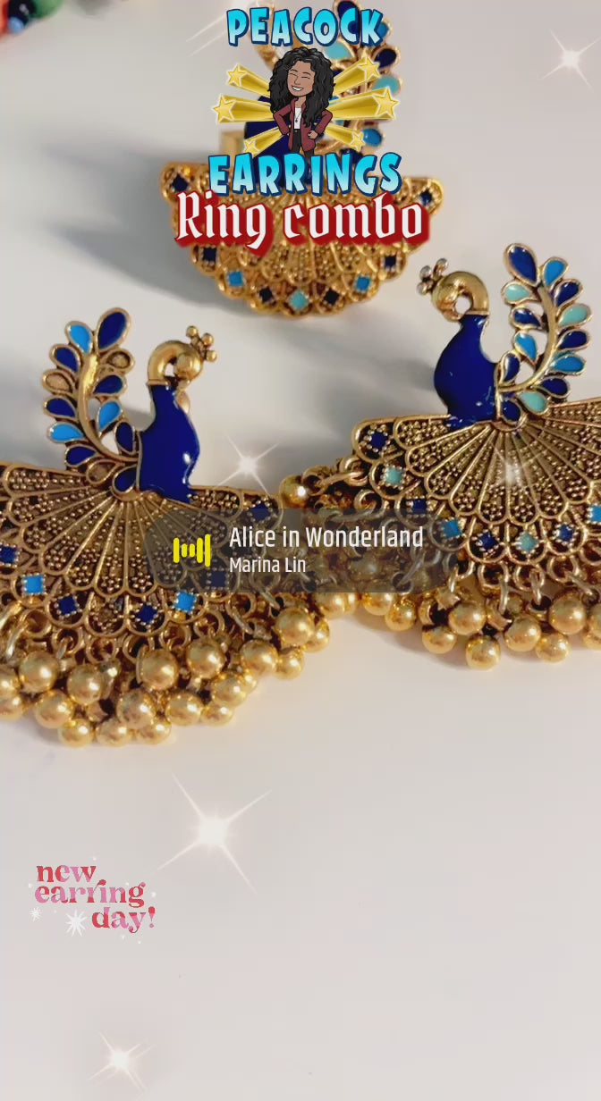 Earring Ring combo Retro antique style peacock Wedding jewelry Jhumka set