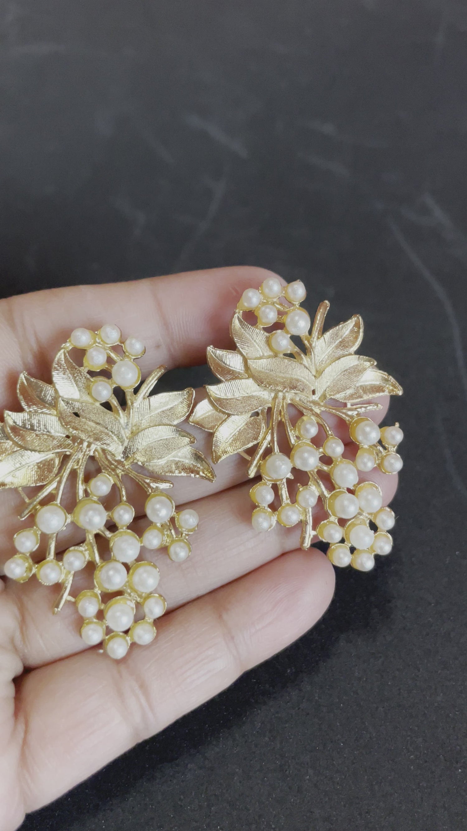 It’s a very beautiful pair of earrings inspired with nature carved petals and flowers decorated with imitation Pearl.